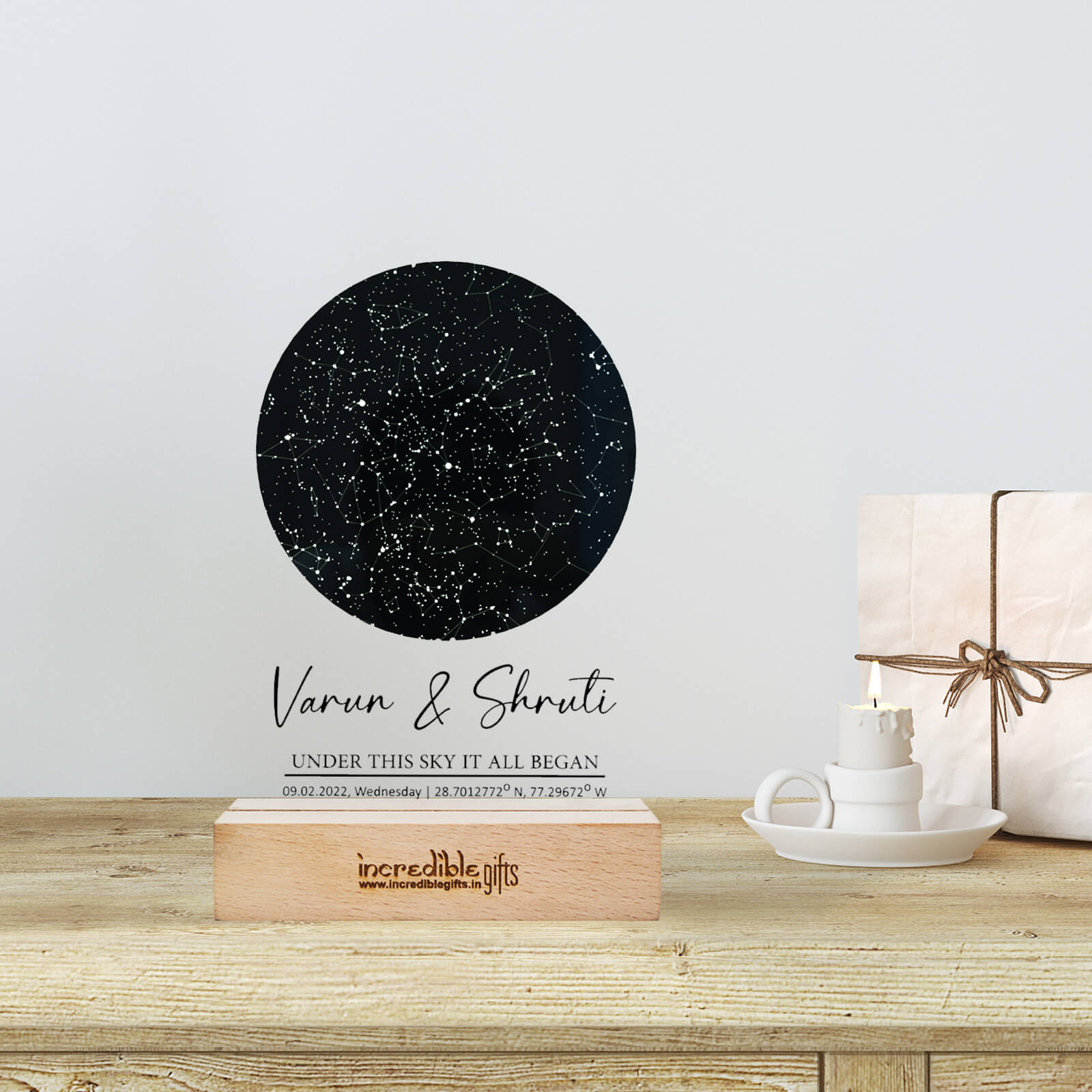 Carefully created, our star maps depict the constellation patterns and celestial bodies that adorned the sky on that special day. Whether it’s the night you first met, your wedding anniversary, or a milestone birthday, this personalized star map will serve as a timeless reminder of that precious moment. Crafted with attention to detail, our star maps are printed on superfine-quality clear acrylic, ensuring vibrant colors and sharp imagery. The frame itself is made of durable acrylic, providing a sleek and modern look that effortlessly complements any decor.