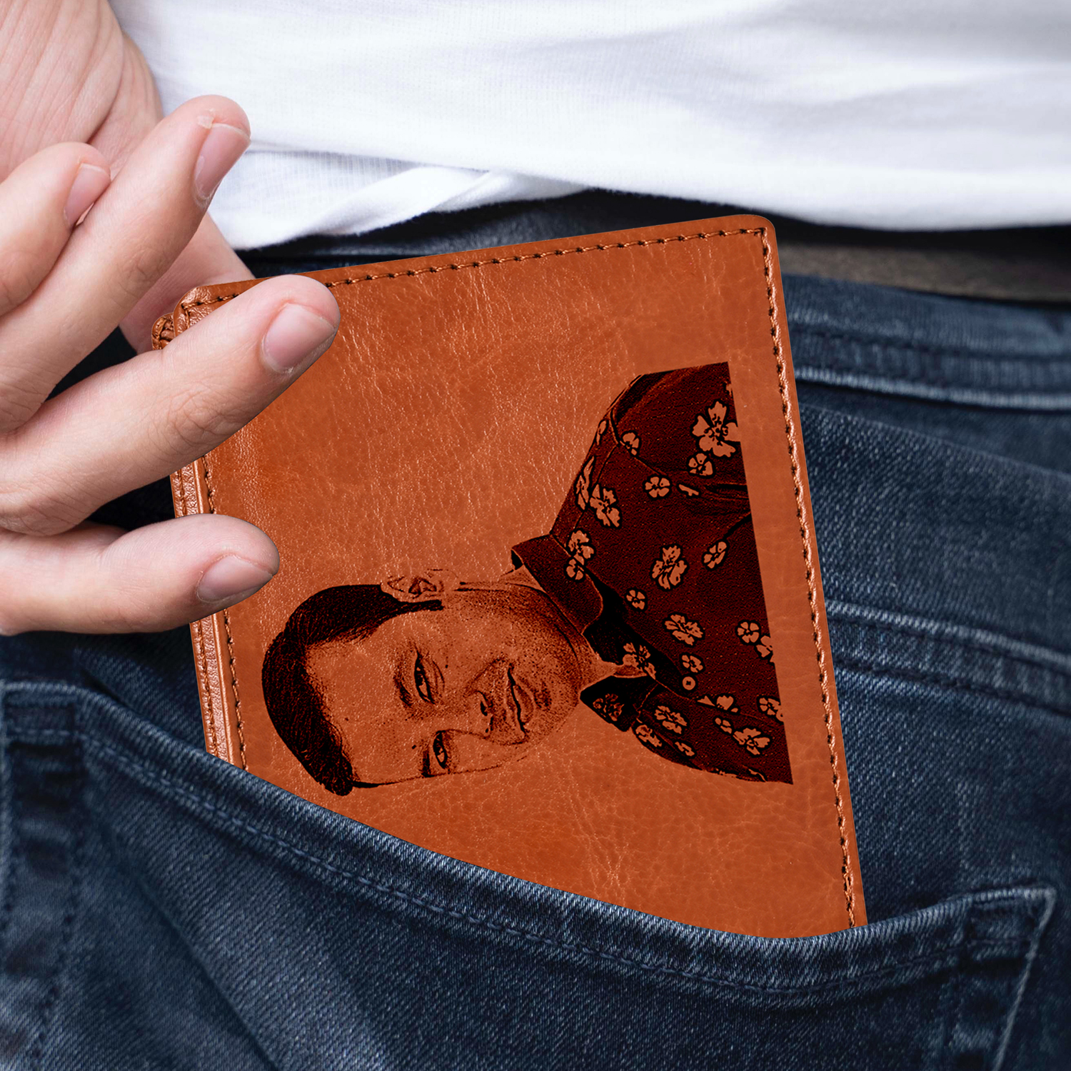Indulge in the epitome of sophistication with our meticulously crafted personalized wallet for men. Exuding timeless elegance, this photo wallet seamlessly combines style with functionality, making it the perfect accessory for the modern gentleman. Our personalized wallet design goes beyond the ordinary, offering a unique touch to your everyday carry. Crafted from vegan leather, it not only exudes luxury but also reflects your commitment to sustainability. Each wallet is meticulously engraved with precision, adding a personalized touch that sets it apart from the rest.
