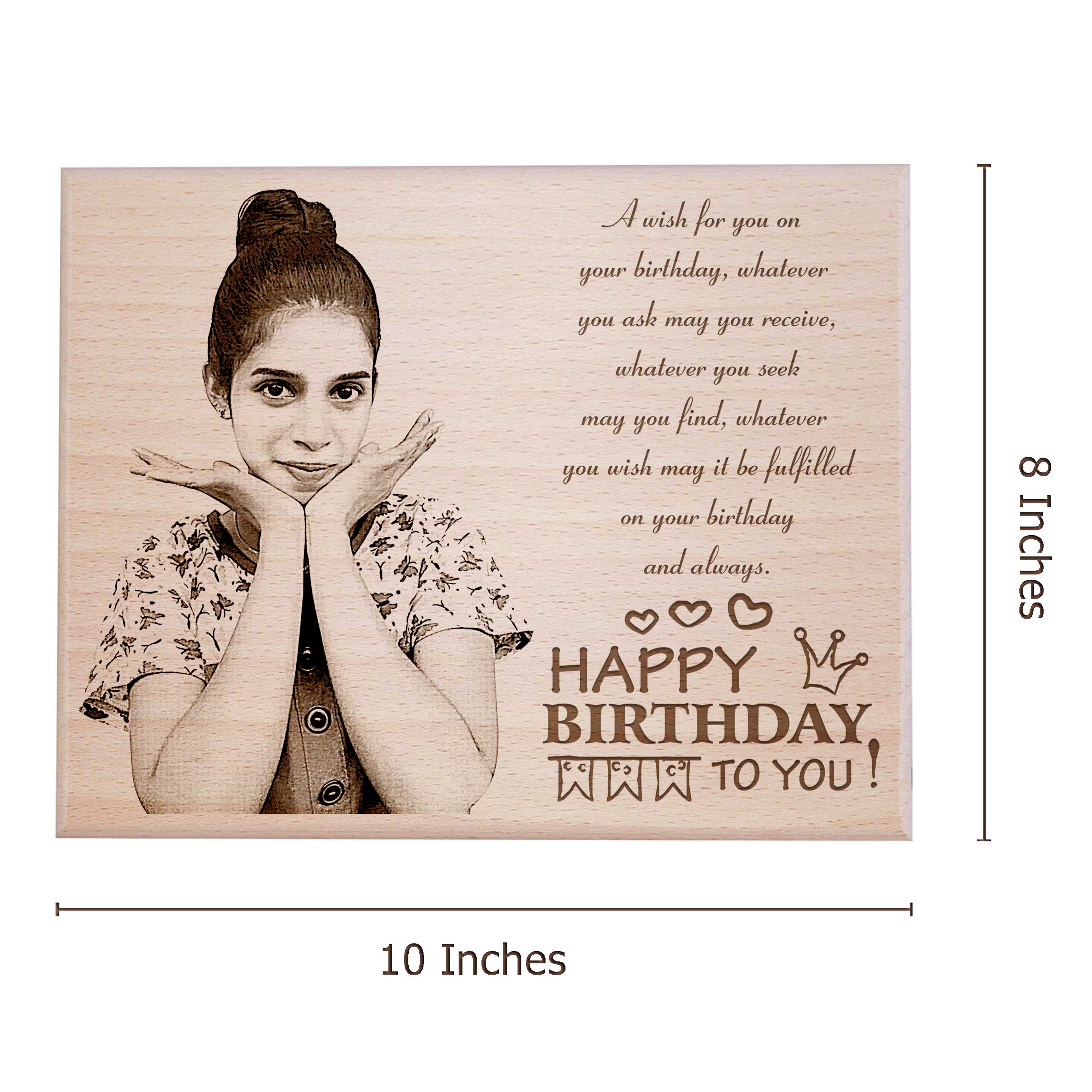 Our Personalized Wooden Birthday Plaque is a unique and thoughtful way to commemorate special occasions. Made from premium beech wood, this 10×8 inch plaque serves as a perfect canvas for an engraved picture. Whether you are looking for great birthday gifts or a personalized birthday gift for a loved one, this plaque is an excellent choice. The wooden birthday frame is meticulously crafted to ensure quality and durability. The plaque features a smooth finish, which enhances the engraved photo frame’s appearance.
