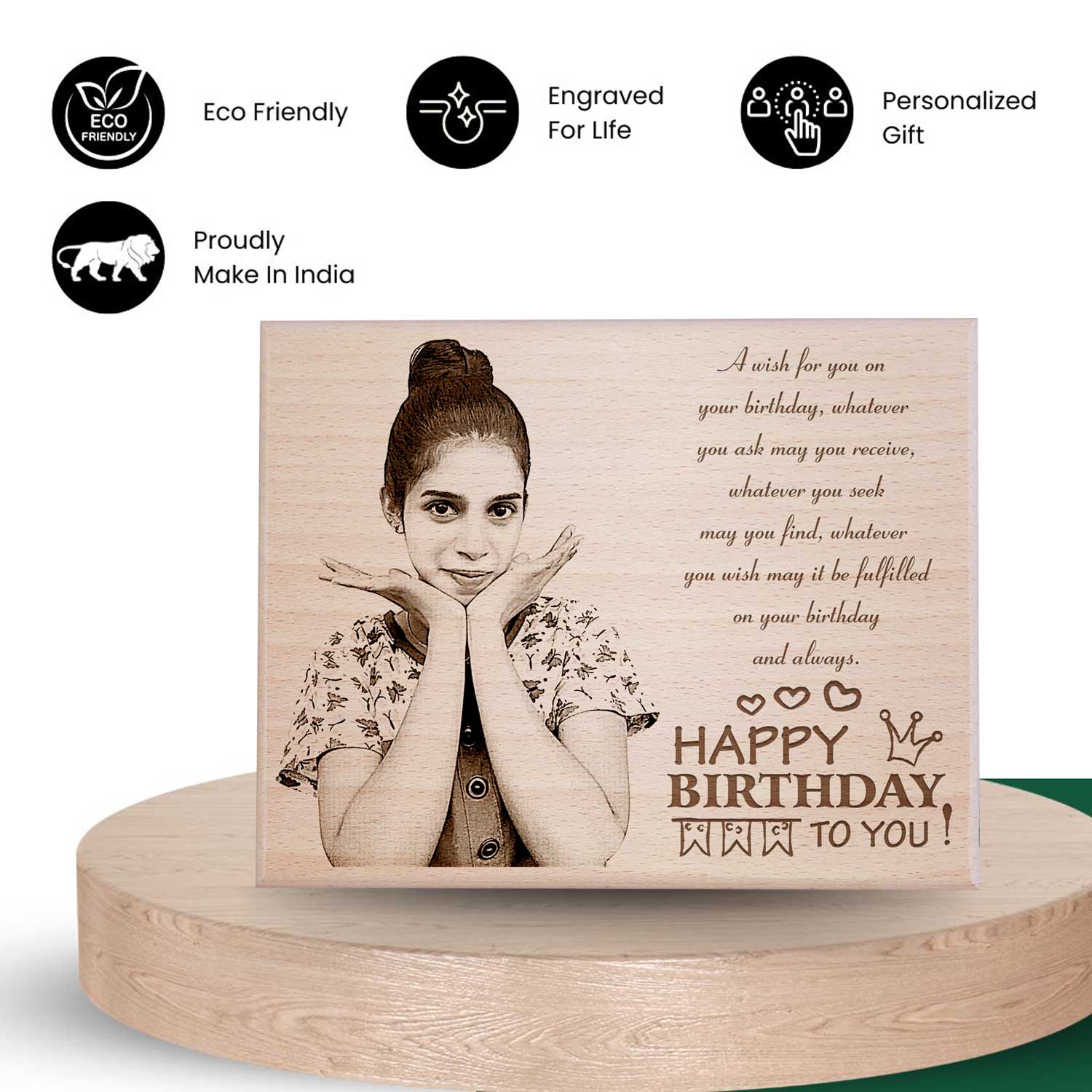 One of the standout features of our wooden birthday plaque is its customization. You can personalize it with a photo and a special message, making it the perfect birthday present for anyone. Whether it’s a birthday for her or birthday for him, our personalized wood products offer a unique way to express your sentiments. Finding unique birthday gifts can be challenging, but our wooden plaque stands out as a perfect choice. Whether you are searching for personalized gifts for him or unique engraved gifts for her, this plaque is an excellent option.