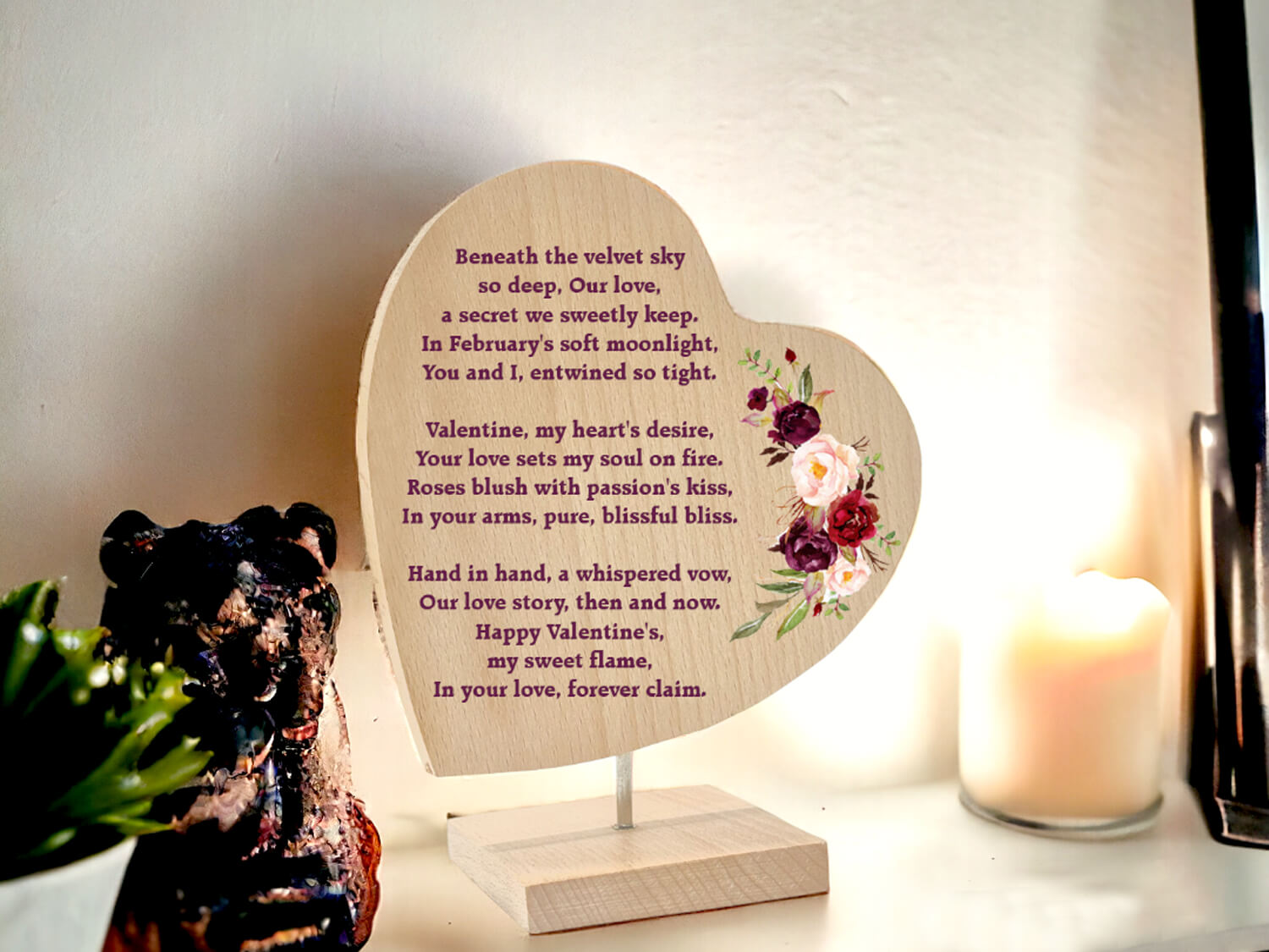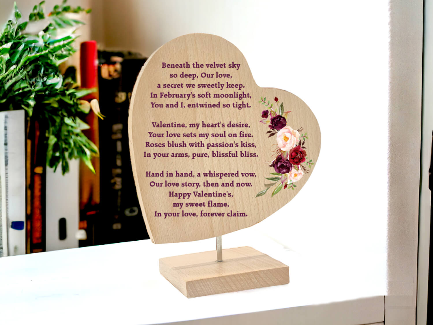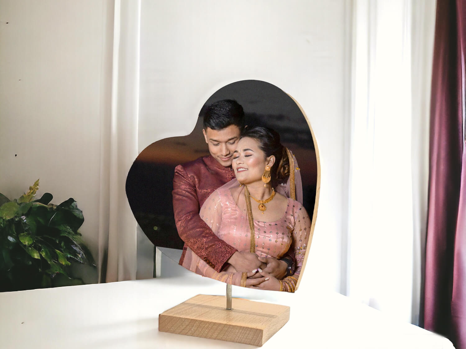 Crafted from high-quality wood, this photo frame exudes warmth and elegance. Its unique double-sided design allows you to showcase special moment with your message, making it a symbol of your enduring love and connection. The heart-shaped frame adds a touch of romance, making it an ideal choice for couples looking to immortalize their cherished memories.