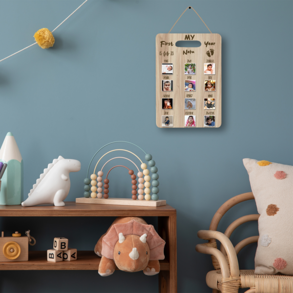 Each photo on this Printed board tells a story, capturing the essence of your baby’s first year. From sleepy newborn moments to playful giggles, every milestone finds its place on this personalized Photo board, creating a cherished memento for your wall.