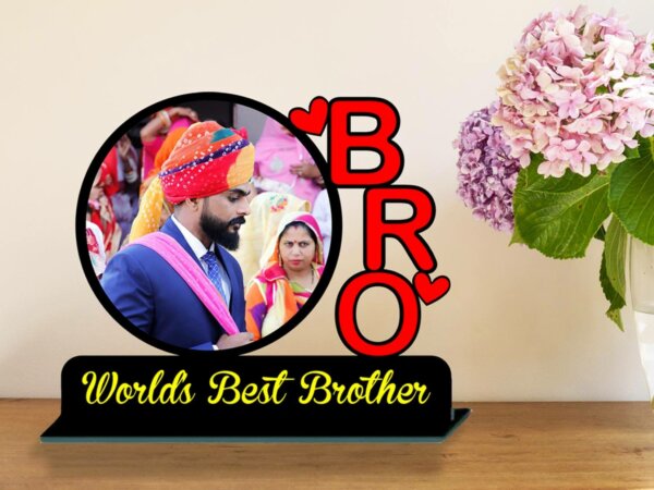 Celebrate the incomparable bond you share with your brother through our Personalised birthday gifts of Worlds Best Bro Photo Frame For Brother. This personalised photo frame is beautifully crafted and this customizable photo frame is a meaningful and perfect photo frame for brother birthday gift that captures the essence of your relationship, making it perfect for your brother’s birthday and Brother’s Day celebrations as well as Raksha Bandhan.