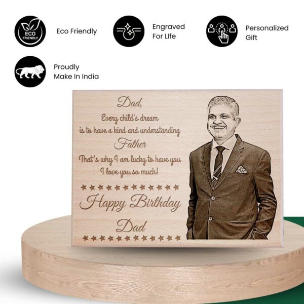 What sets our engraved gifts apart is the customization feature. Engraved with intricate details, this father’s day photo frame becomes a truly one-of-a-kind gift. Our engraved photo frame for father isn’t just a gift; it’s a symbol of the bond between father and child. Every time Dad gazes upon the frame, he’ll be reminded of the love and appreciation that surrounds him. Our personalized gift for dad birthday are tangible expression of gratitude that speaks volumes without saying a word. In a world filled with fleeting trends, our wooden engraved gifts stands the test of time.
