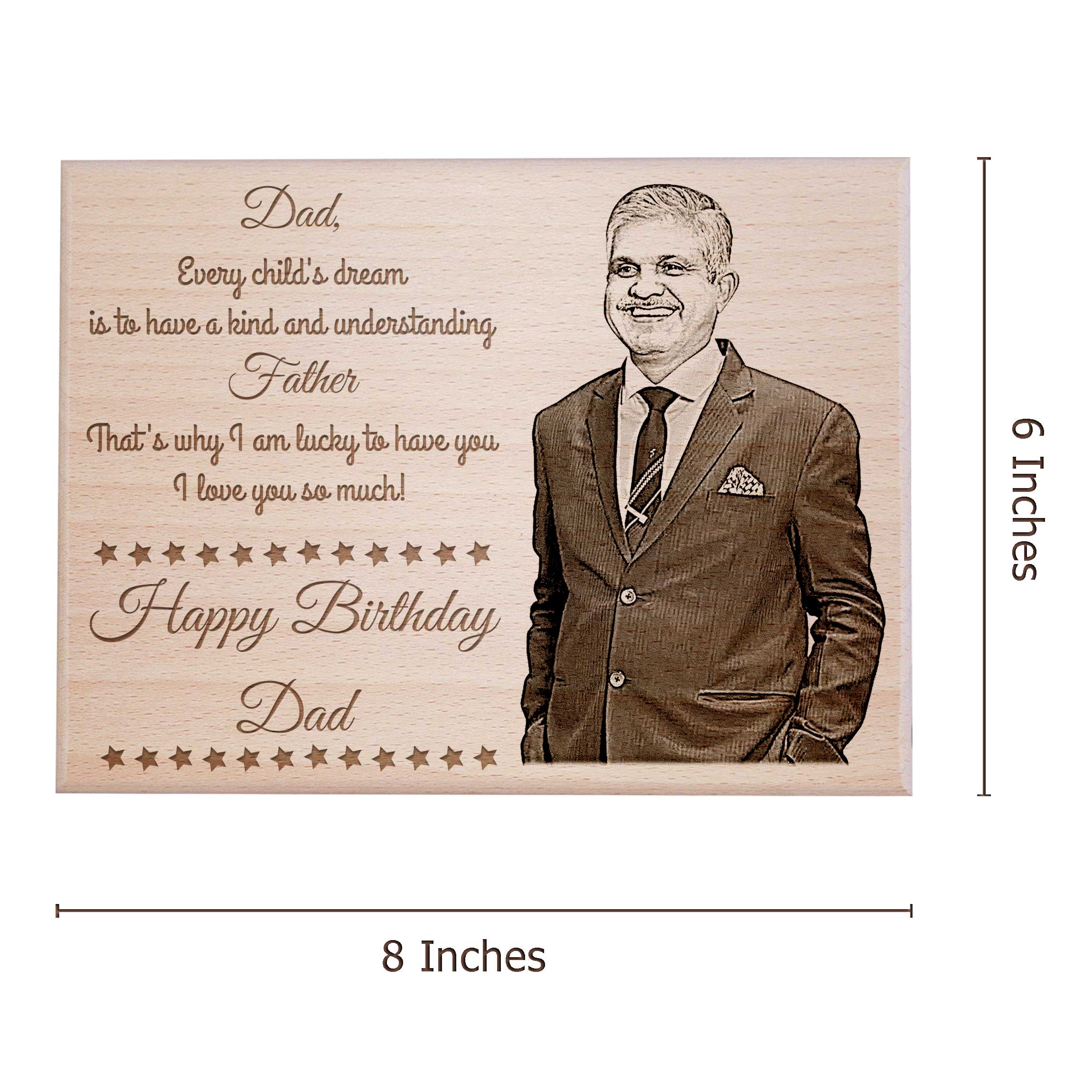 What sets our engraved gifts apart is the customization feature. Engraved with intricate details, this father’s day photo frame becomes a truly one-of-a-kind gift. Our engraved photo frame for father isn’t just a gift; it’s a symbol of the bond between father and child. Every time Dad gazes upon the frame, he’ll be reminded of the love and appreciation that surrounds him. Our personalized gift for dad birthday are tangible expression of gratitude that speaks volumes without saying a word. In a world filled with fleeting trends, our wooden engraved gifts stands the test of time.