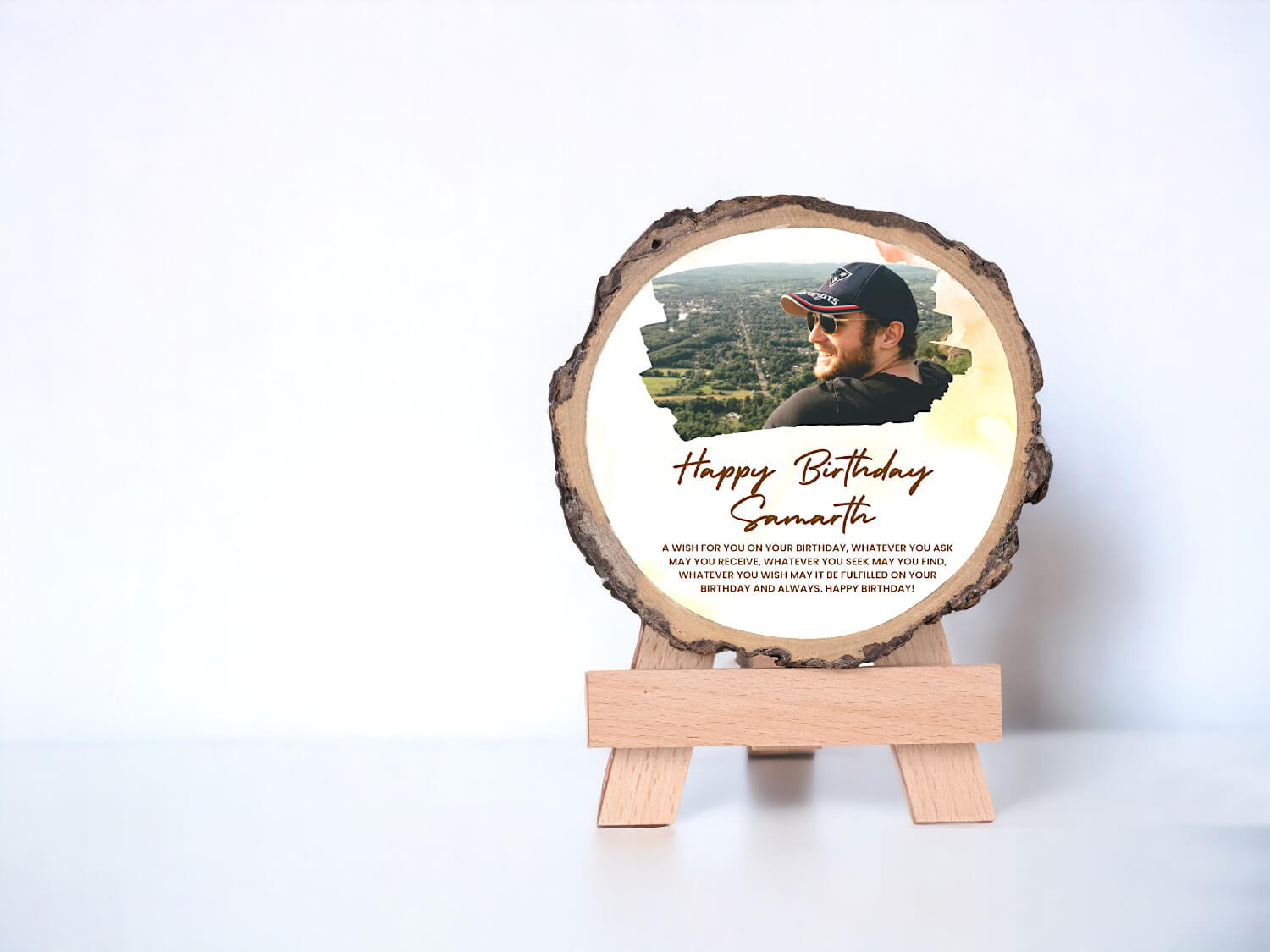 Personalized Natural Wood Color Photo Plaque With Text For Him
