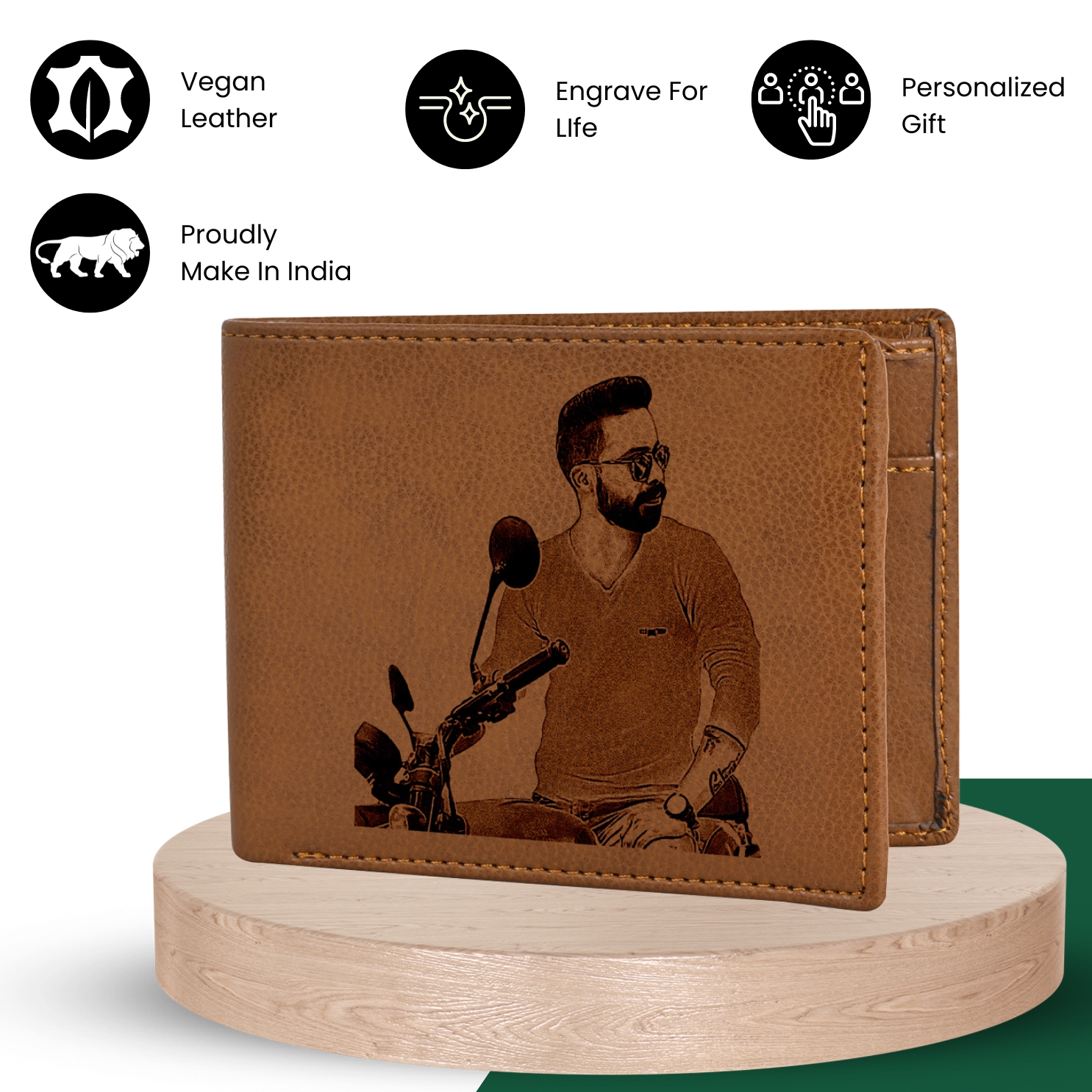 Indulge in the epitome of personalized luxury with our exquisitely crafted personalized vegan leather photo wallet for men. Meticulously fashioned from premium vegan leather, this wallet seamlessly combines impeccable style with eco-conscious ethics, ensuring a guilt-free indulgence in both fashion and function.