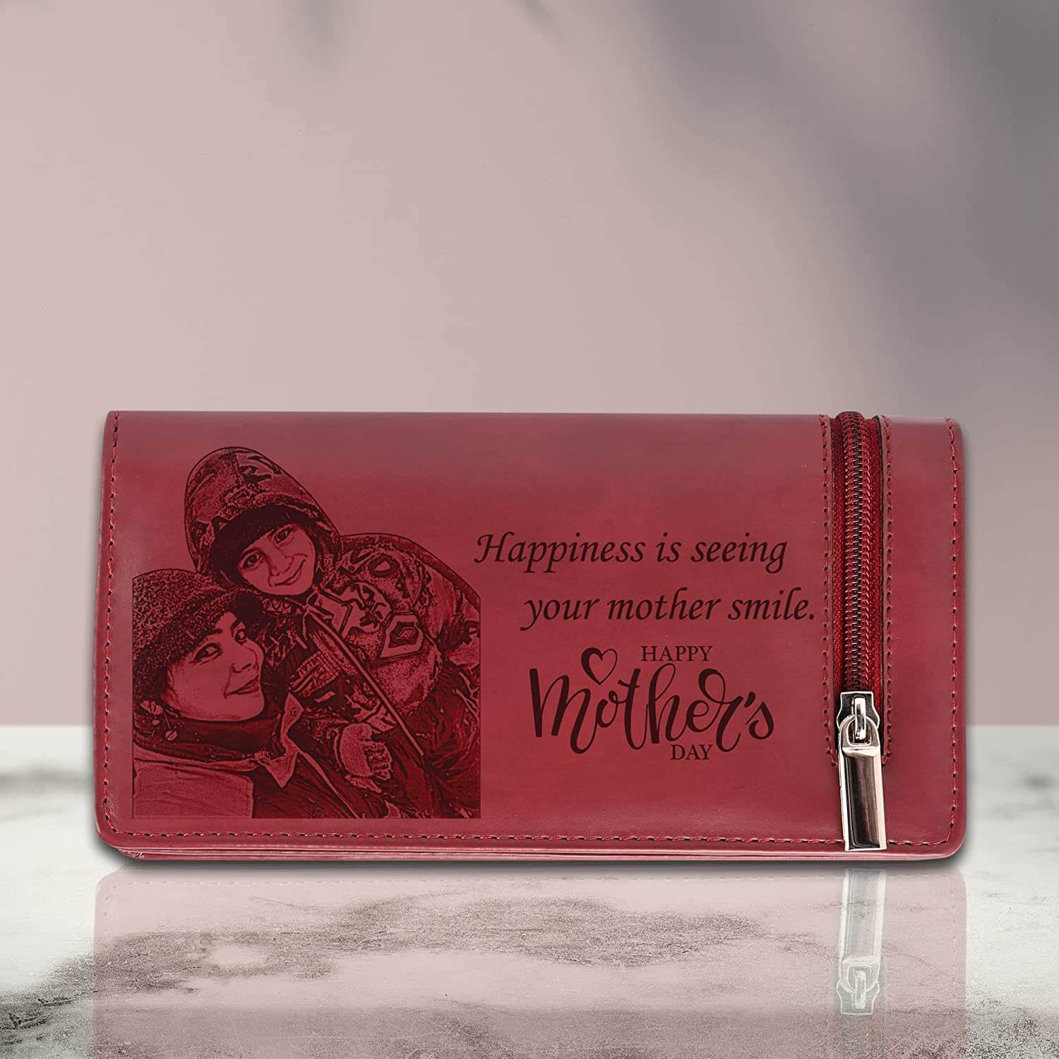 Searching for the perfect Mothers Day Gift that seamlessly combines style and sentiment? Look no further than our exquisite personalized wallet for women. Crafted with meticulous attention to detail, this elegant ladies wallet is more than just a practical item; it’s a cherished memento she’ll treasure for years to come. At the heart of this stunning vegan leather engraved lies its customizable features. From engraved photo to personalized message, each detail can be tailored to reflect Mom’s unique style and personality. Made from premium vegan leather, this wallet for women exudes luxury while offering durability that withstands the test of time.