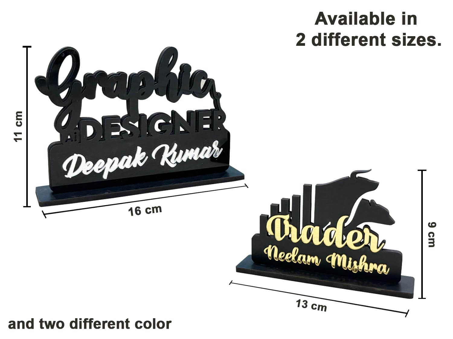 Whether it’s unique corporate gifts for a colleague or a personal addition to your workspace, our custom desk nameplate is a timeless choice that will be appreciated for years to come. Weather you’re looking for a name plate for CA, name plate for Doctor, gifts for a Trader, personalized teacher name plates or any other professional name plate, this wooden desk nameplate is the solution for all your corporate gifting needs. Elevate your office space with our exquisite and personalized unique desk name plates, designed to make a statement and leave a lasting impression. Crafted from premium wood, our custom desk name plates are the perfect addition to your workspace.