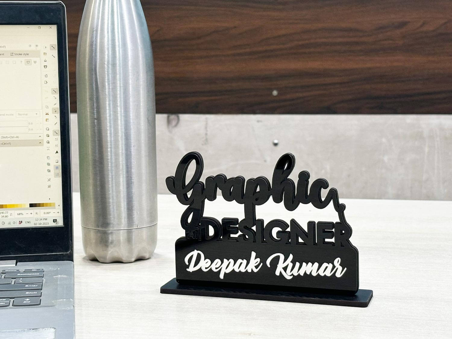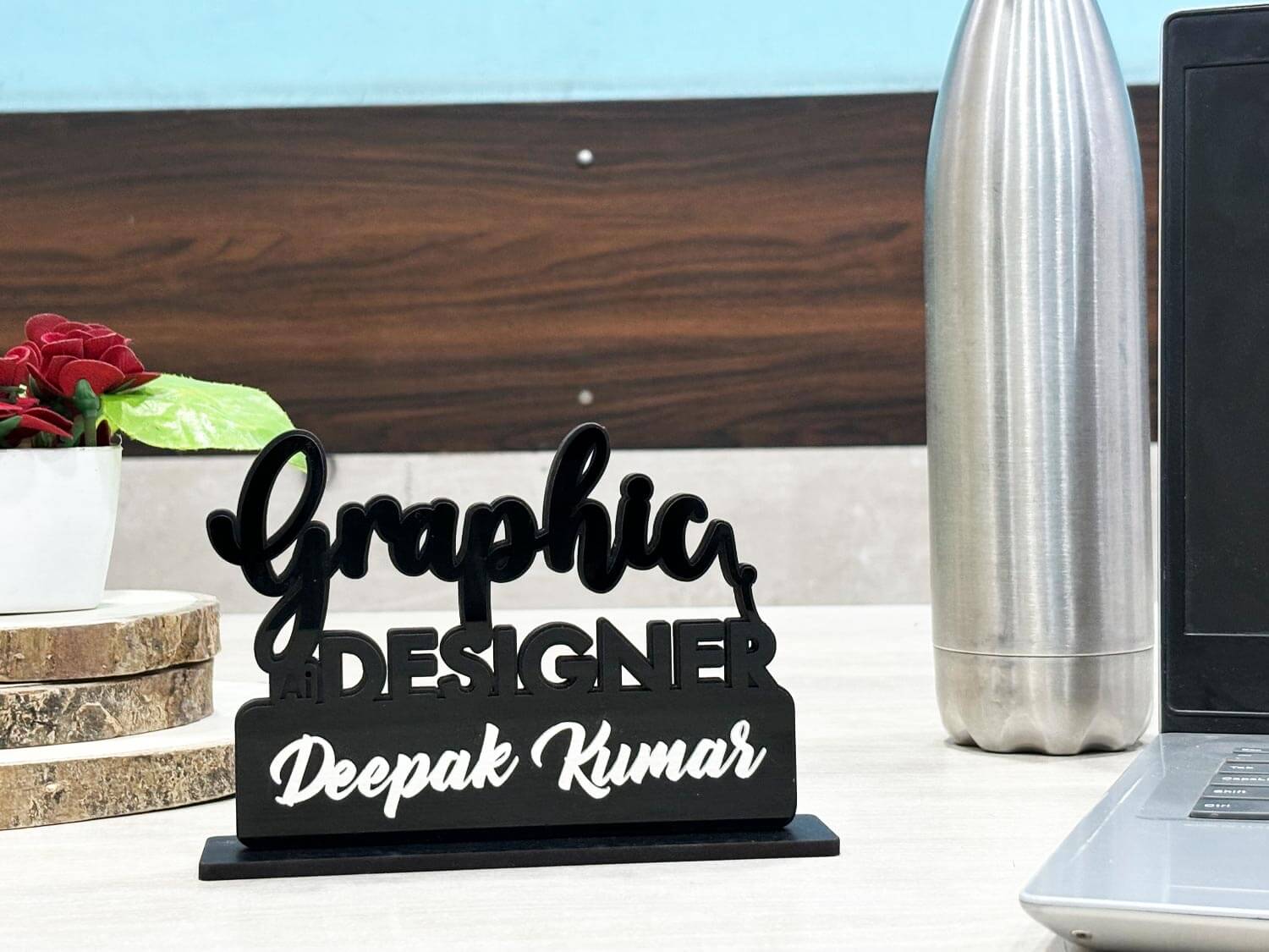 Elevate your office decor with our exquisite desk name plate. Crafted from premium wood, this custom office table nameplate adds a touch of professionalism and sophistication to your workspace. Make it truly yours with personalized names & designation.