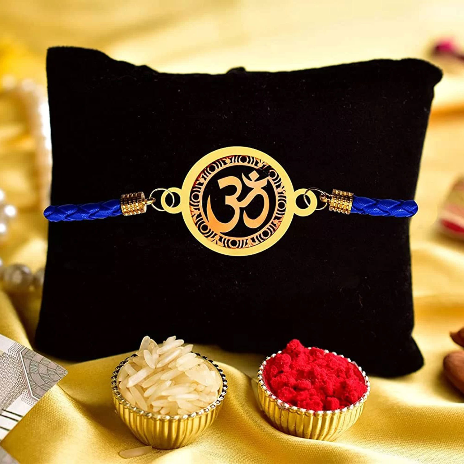 Rakshabandhan Combo of Personalized Wallet and Gold Plated OM Incredible Rakhi with Roli Chawal for Men (Wood, Brown)