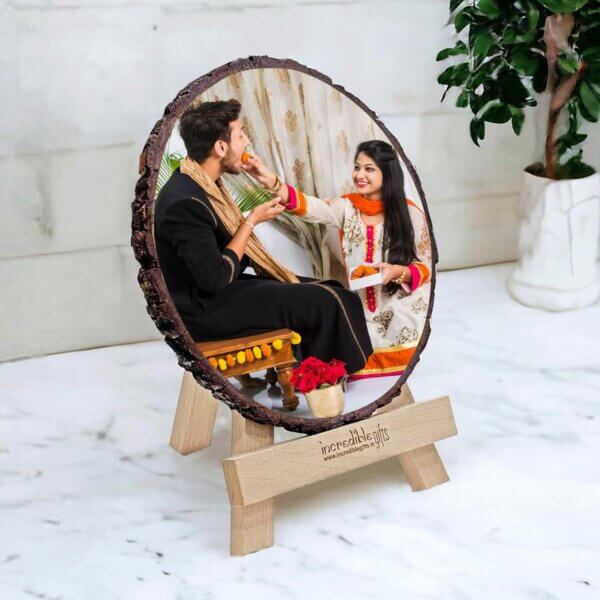 This natural wooden photo frame can be the best gift for Brother & Sister or Cousins. This custom Raksha Bandhan photo plaque can make your sister’s day memorable when you surprise them by gifting this.