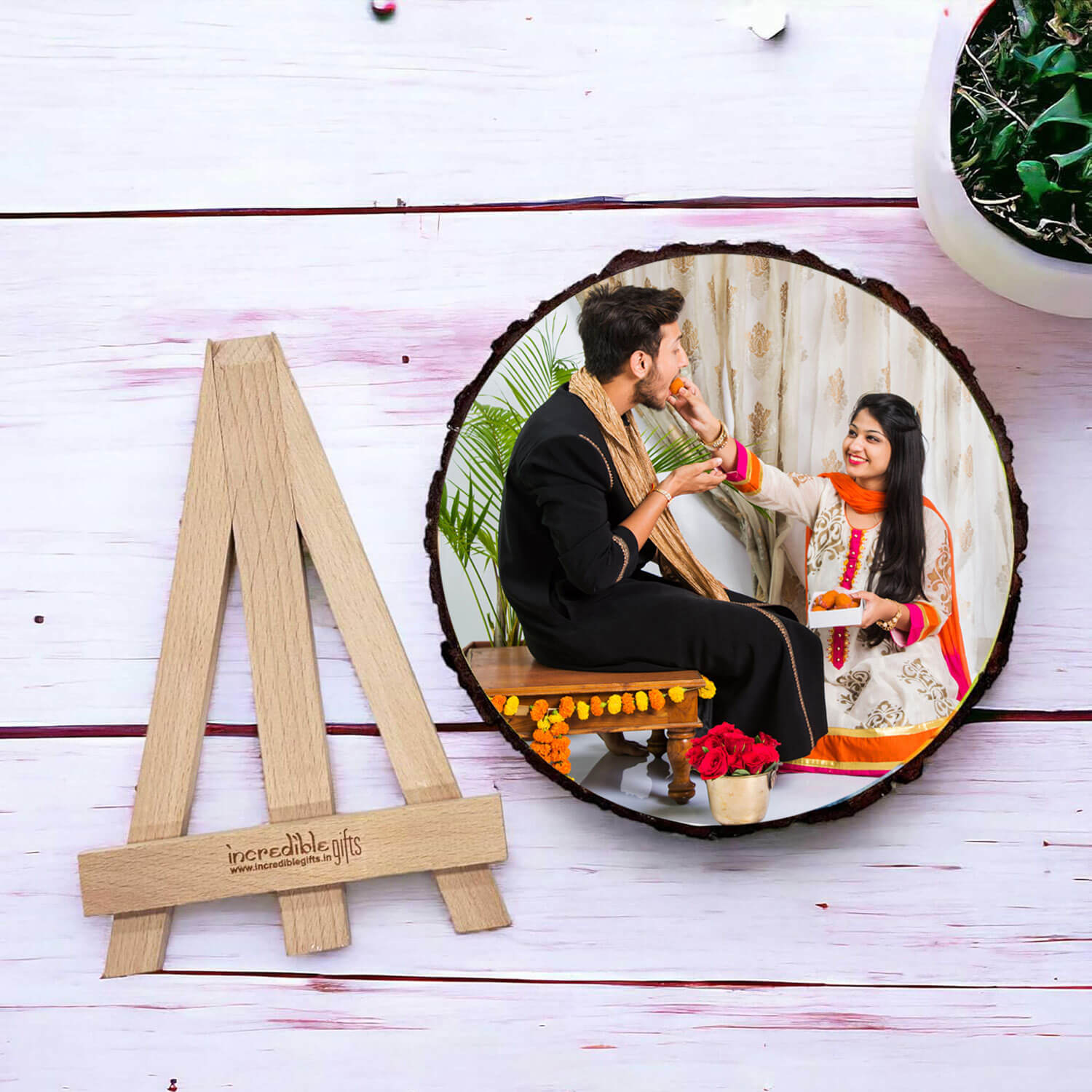Personalized Wooden Slice Rakshabandhan Photo Frame Gift For Raksha Bandhan is the best way to keep close to your heart the things that are closest to your heart. Size will be between 10 to 15 inches longest side, that is quite large on a table.