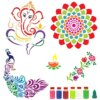 Rangoli Stencils Set of 5 for Floor Diwali Decoration with 6 Colors