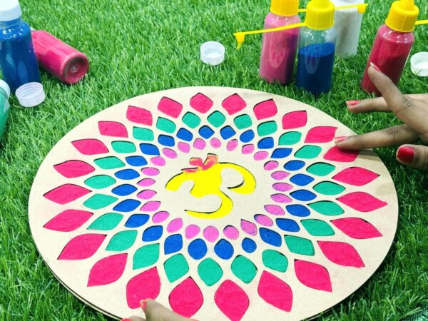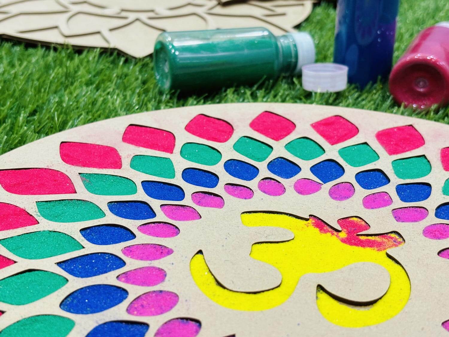 Reusable Wooden Om Rangoli Stencil for Floor with Rangoli Colour