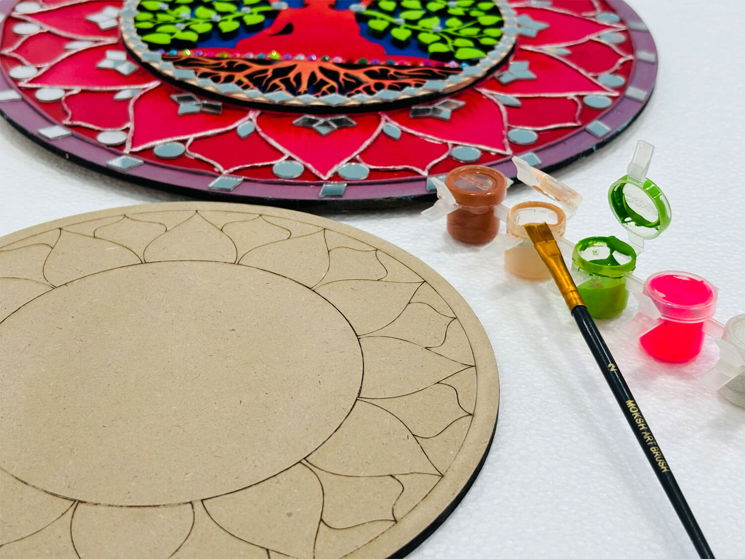 Crafted with precision, our MDF board is versatile and ready for your imaginative touch. Use it to create stunning mandalas that can adorn your walls as captivating pieces of art. The round MDF art board is also an excellent choice for experimenting with lippan art, offering a unique twist to traditional crafting.