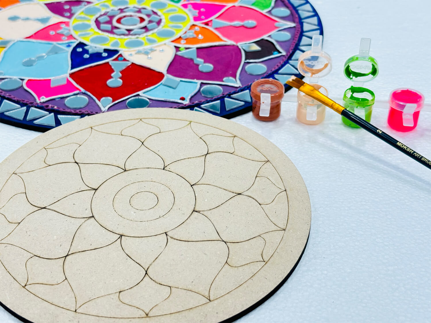 Crafted with precision, our MDF board is versatile and ready for your imaginative touch. Use it to create stunning mandalas that can adorn your walls as captivating pieces of art. The round MDF art board is also an excellent choice for experimenting with lippan art, offering a unique twist to traditional crafting.