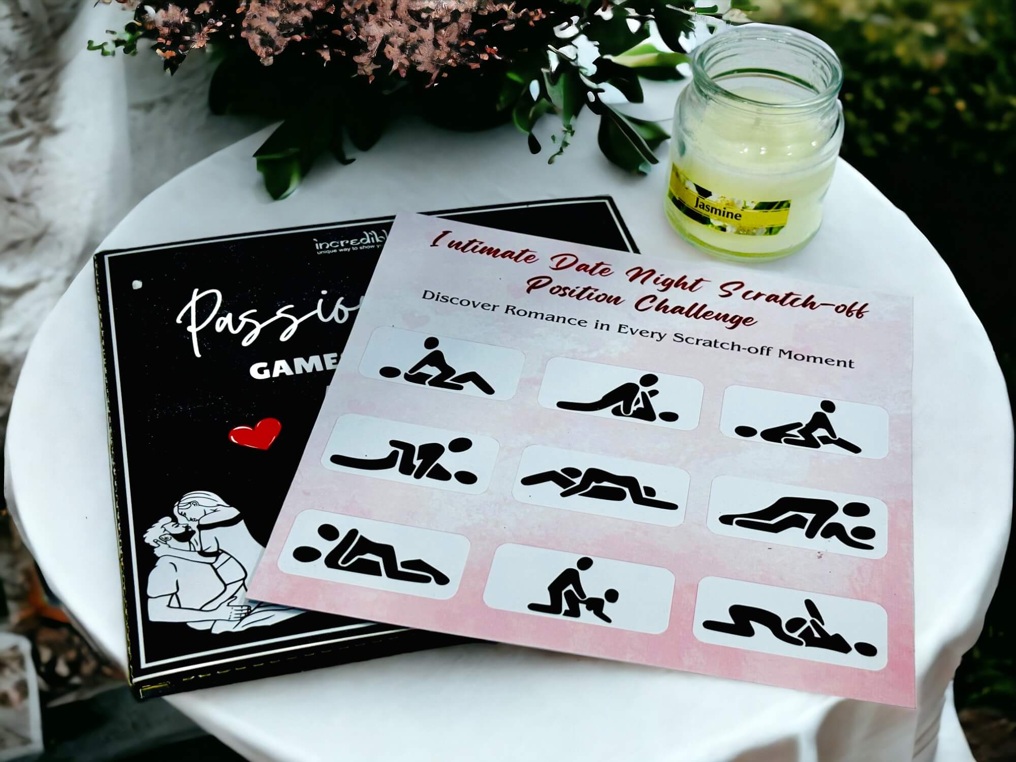 Elevate your date night with our Intimate Date Night Scratch-Off Position Challenge. This unique game includes scented candles to enhance the mood as you explore new positions and ignite passion with your partner.