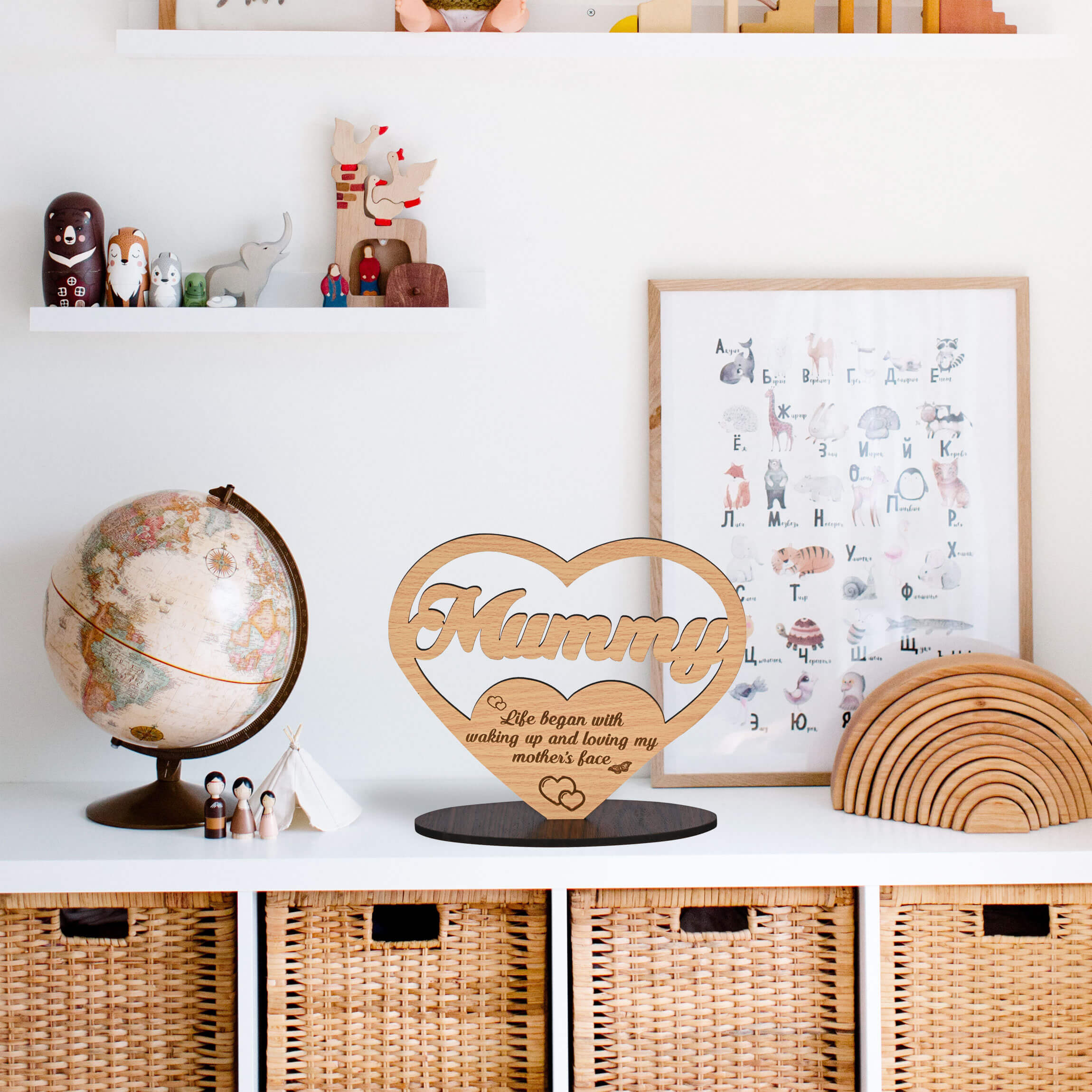 Crafted with precision and care, our customized gifts for mom stands as a testament to Mom’s unwavering love and support. Each detail is meticulously engraved, ensuring a unique and unforgettable keepsake that she’ll treasure for years to come. Made from premium-quality wood, this trophy exudes elegance and charm, making it the perfect addition to Mom’s cherished collection of memories.