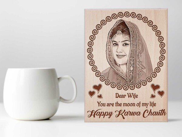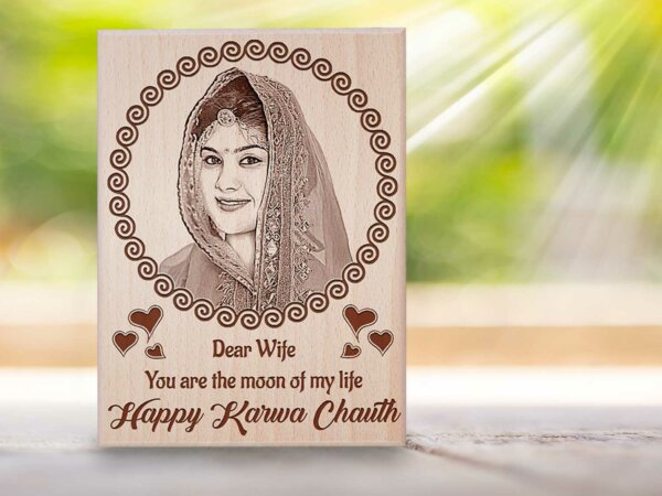 Personalized Engraved Wooden Photo Frame Karwachauth Gift For Wife