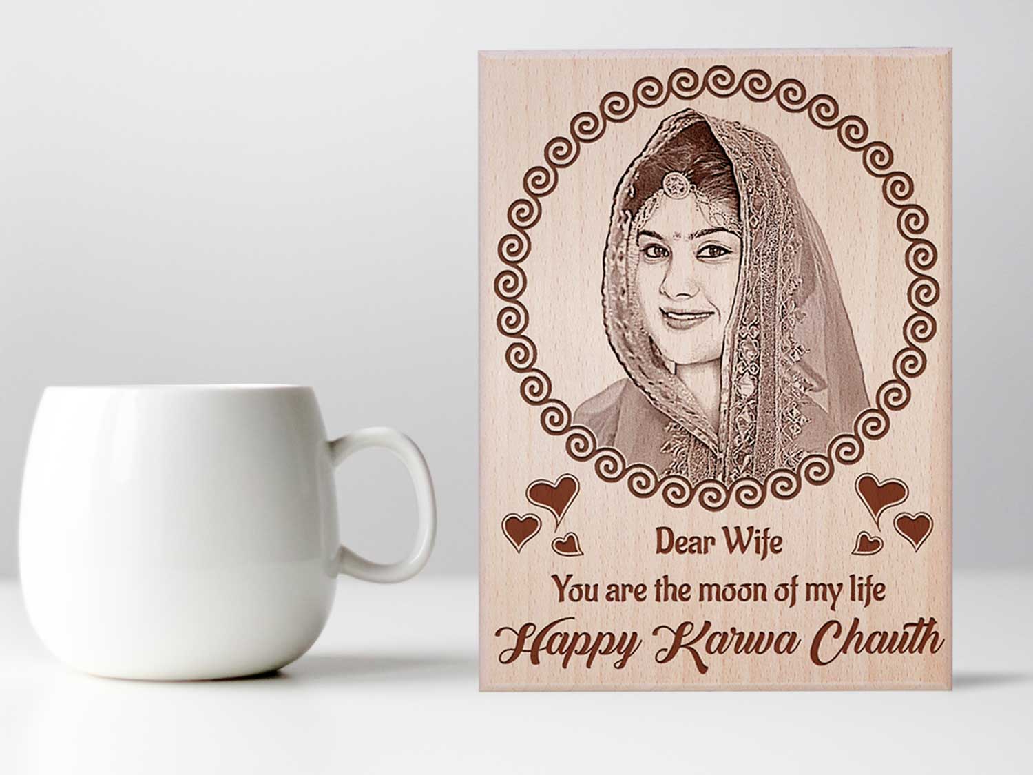 Karwachauth is a special day for every married women in India and husband or friends look for something unique to present on this special day. Incredible Gifts created some unique gifts or ladies gift items that can be presented to wife, sister in laws, mother in law or her. This product is made of natural beech wood and the engraving is done in very fine way. You can touch and feel the depth of the photo and text message on wood. The engraving is for life and it will never fade. You can clean it using wet cloth. It can be used as table top and largest size 12×9 can also be used as wall hanging frame. Present it as a gift for wife special. Karwachauth gift for wife, karwachauth gift for mother in law, karwachauth gift for sister in law, karwachauth gift set or pack or ladies gifts.