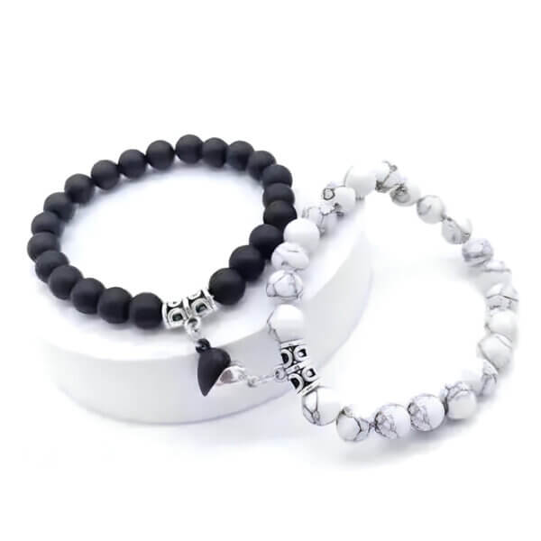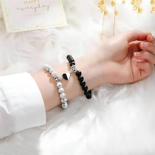 Crafted with elegance, the couple bracelets magnetic heart are adorned with black and white stone crystals, adding a touch of sophistication to their design. Perfect for him and her, this couple bracelet makes an excellent gift for Valentine’s Day, anniversaries, or any romantic occasion.