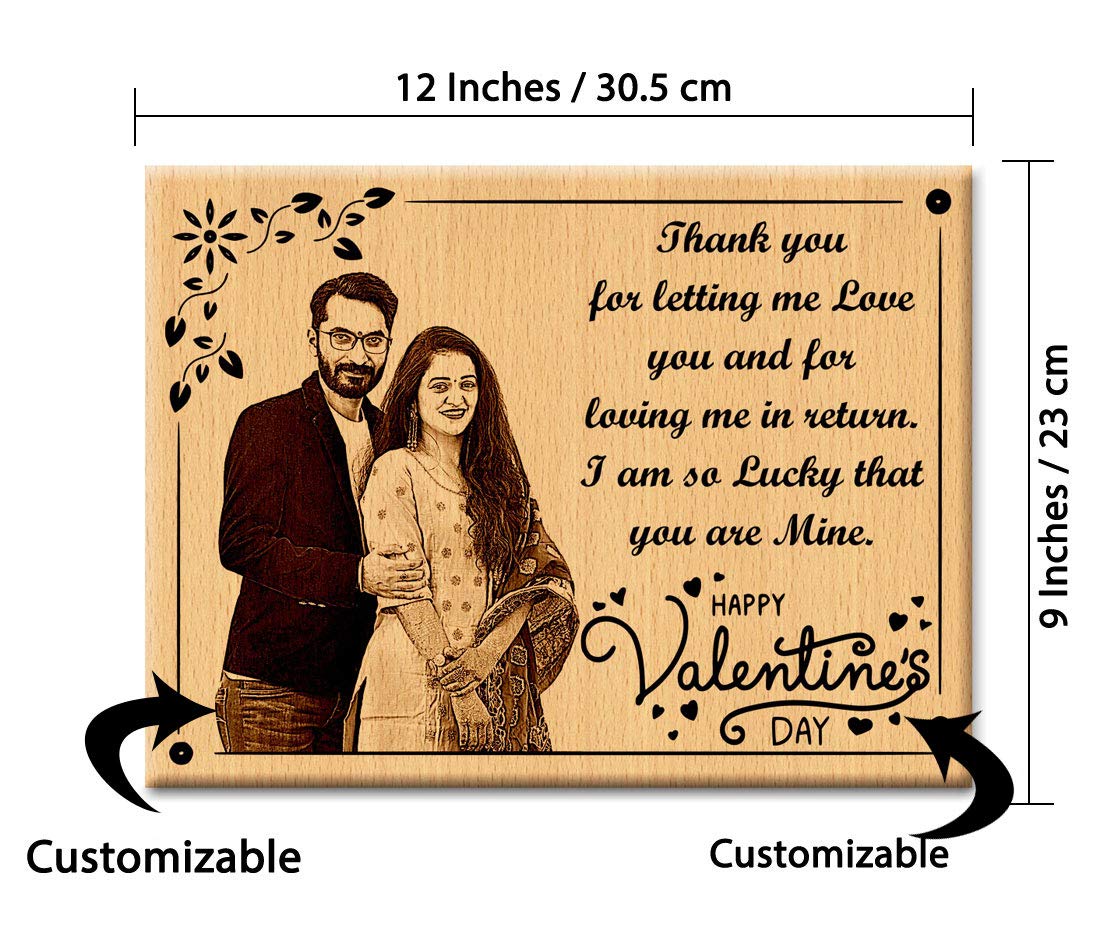 - SIZE & MATERIAL – Personalized Engraved Photo Frame is made of real wood and Teddy Box is Metal with Flowers are made of Polyester Fabric. Size of the Wooden Frame is 12×9 inches and Teddy Box Size is 5×4.5 Inches