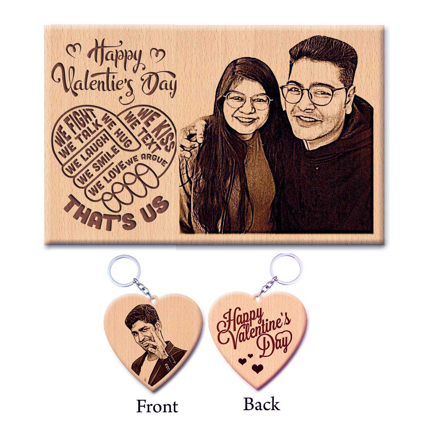 15 reviews for Personalized Wooden Engraved Photo Frame and Keychain Combo for Valentines Day Gift