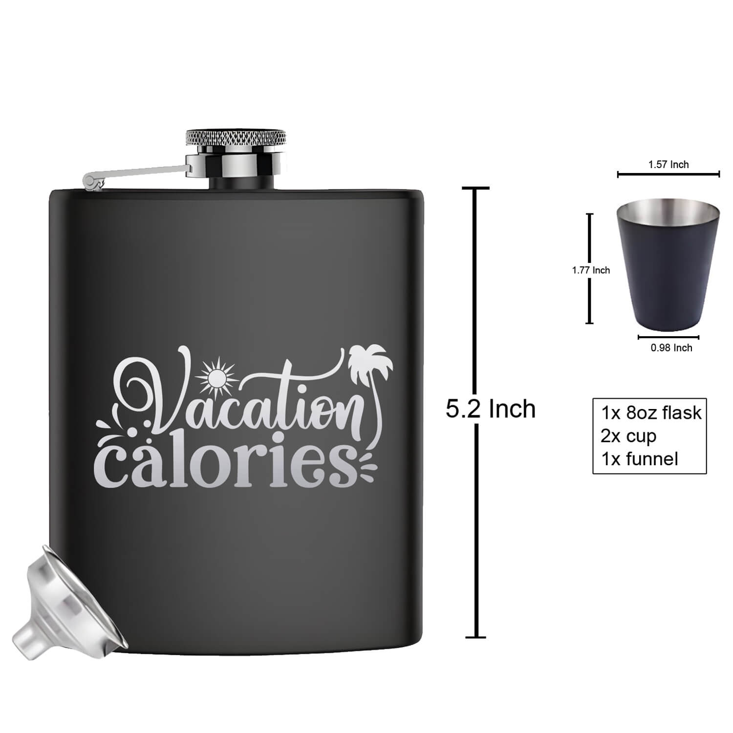 Transport yourself to a bygone era with our Vintage Elegance Hip Flask: Vacation Calories edition. Crafted with precision engraving, it exudes timeless charm and sophistication, the size is 14.5 x 7 cm. making it a perfect gift for any occasion. Shop now and add a touch of nostalgia to your gifting!