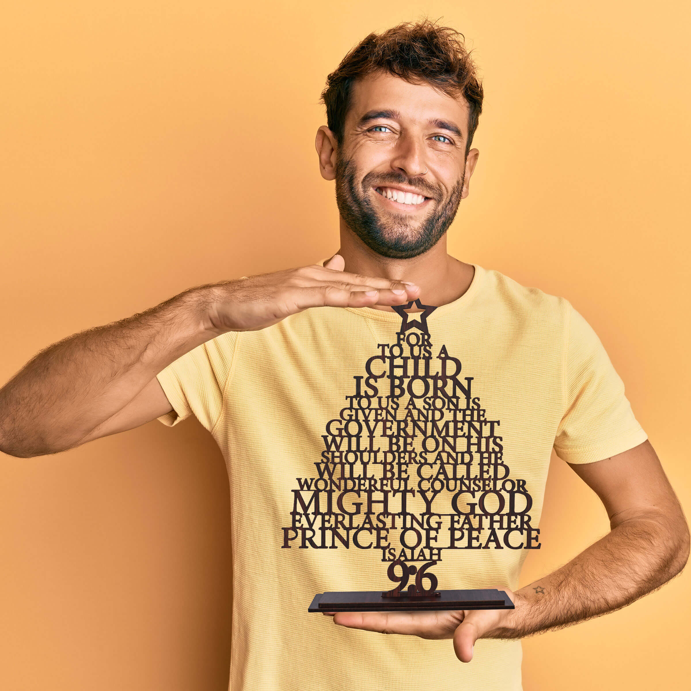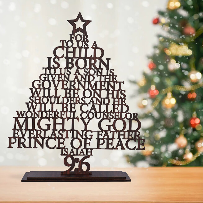 Christmas Tree is made of MDF wood and wood, 100% eco-friendly material, non-toxic, non-pollution. This Christmas home decor Tree is very unique, which makes it the most beautiful and super quality wooden Christmas tree. It can be a nice gift to your family, friends and relatives, also can be a nice decoration for your Christmas tree at home. This Wooden Bible Quote Christmas Tree is only a table-top x mas tree, but with super fine quality, which make it rank as the best Christmas trees for home. We make this Christmas Tree with super fine quality laser cutting machine, so that it is super fine quality, high strength and durable. It is a nice ornaments for your christmas gifts or Christmas party.