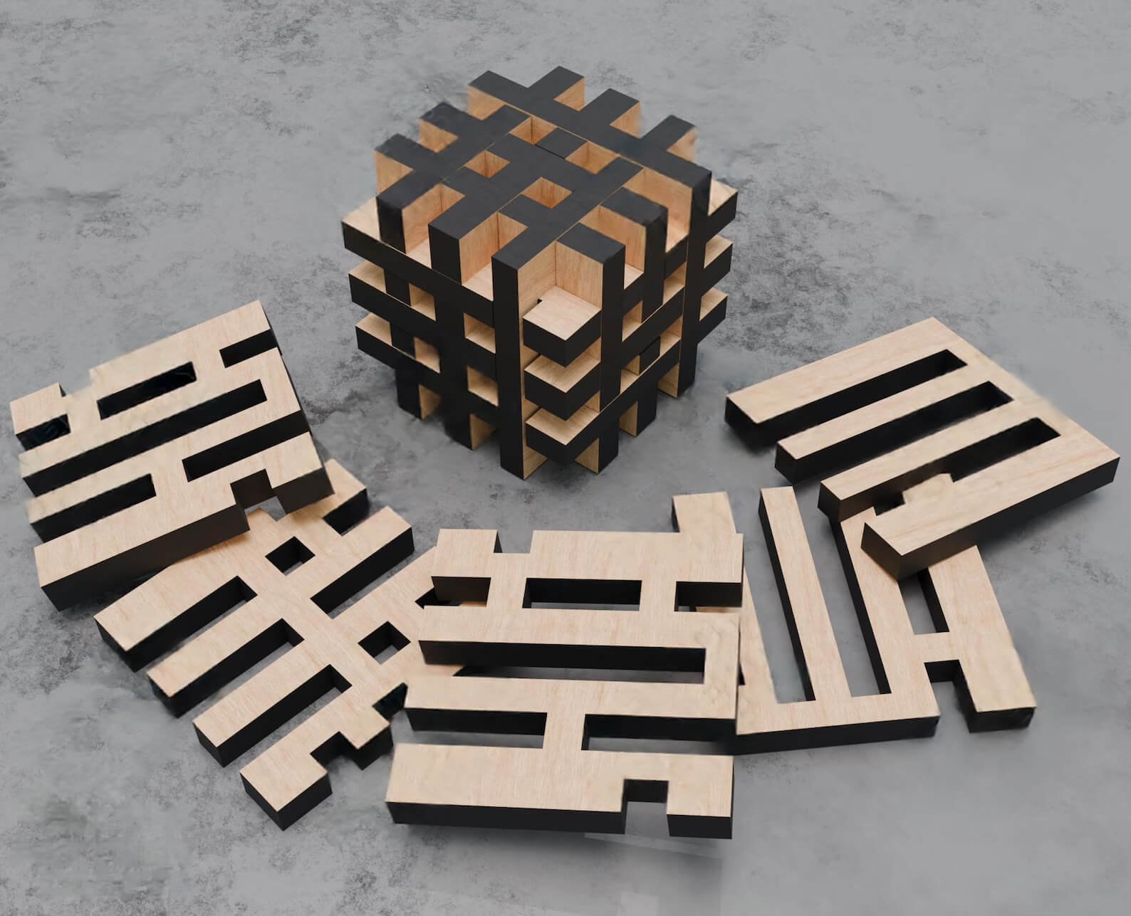 Wooden Cube Puzzle – Brain Teaser 3D Puzzle Game for Kids & Adults
