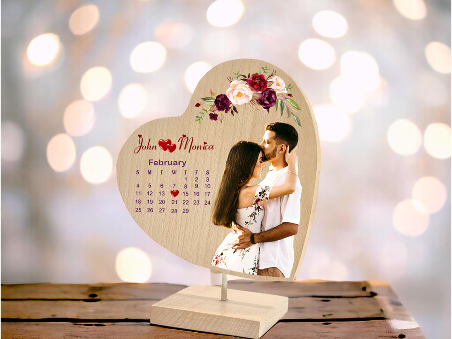Personalized Wooden Double Side Couple Calendar Heart Photo Frame