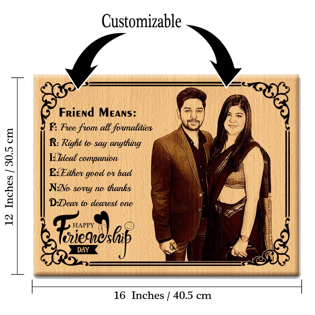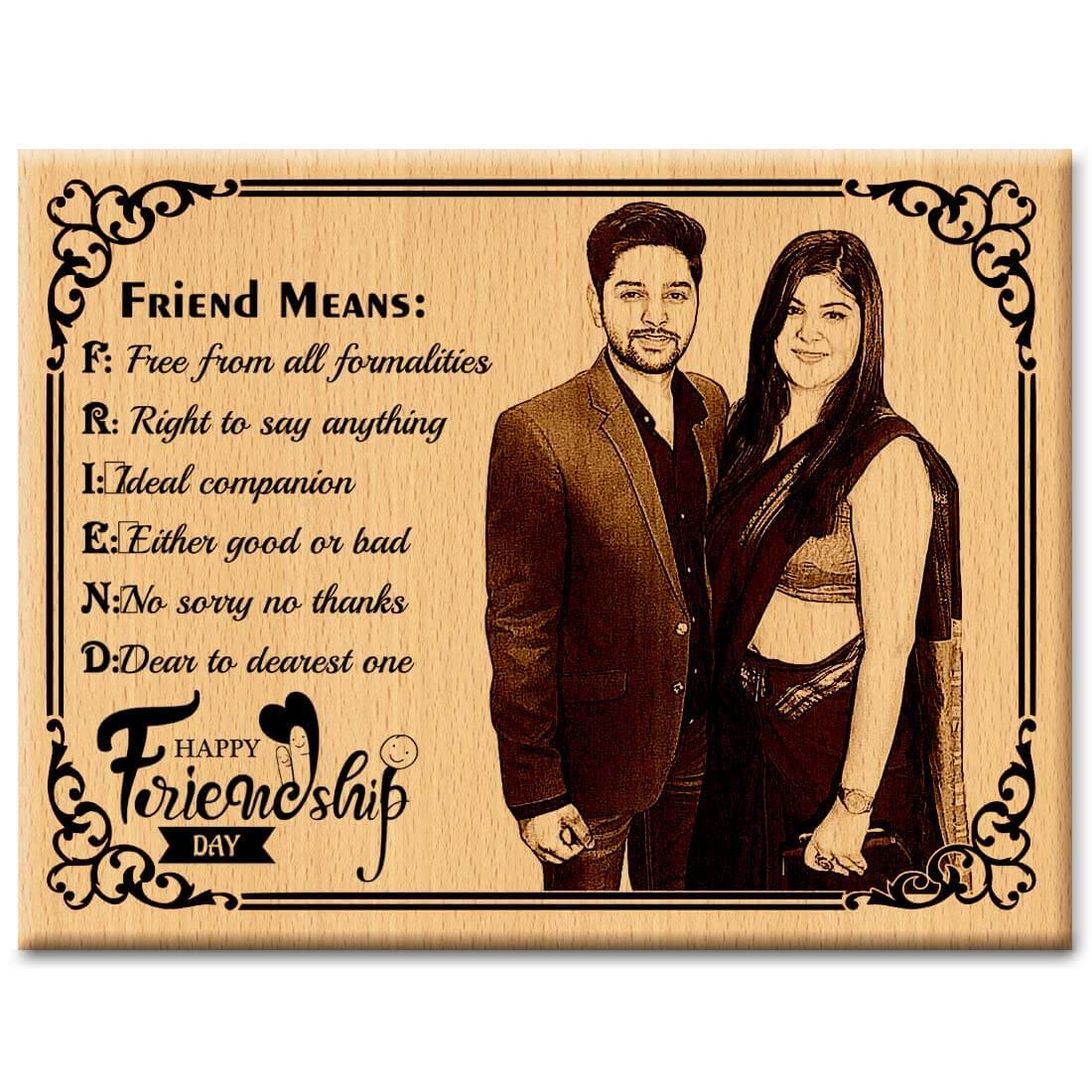 Wooden Engraved Personalized Photo Frame for Best Friend on Friendship Day – Large Size