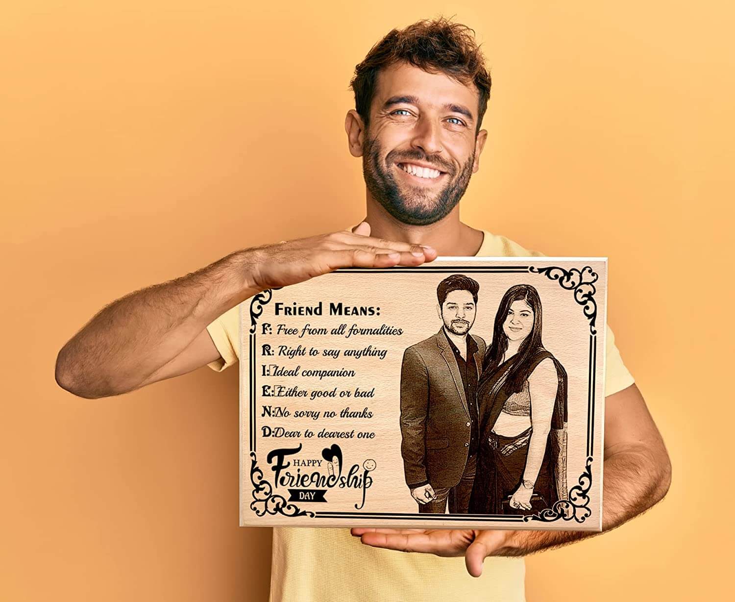 - CUSTOMIZED PHOTO FRAMES WITH PHOTO – Made of natural wood, your photo and text will be engraved on wood and the end result will look amazing and this will be a best gift for friend or Buddy.