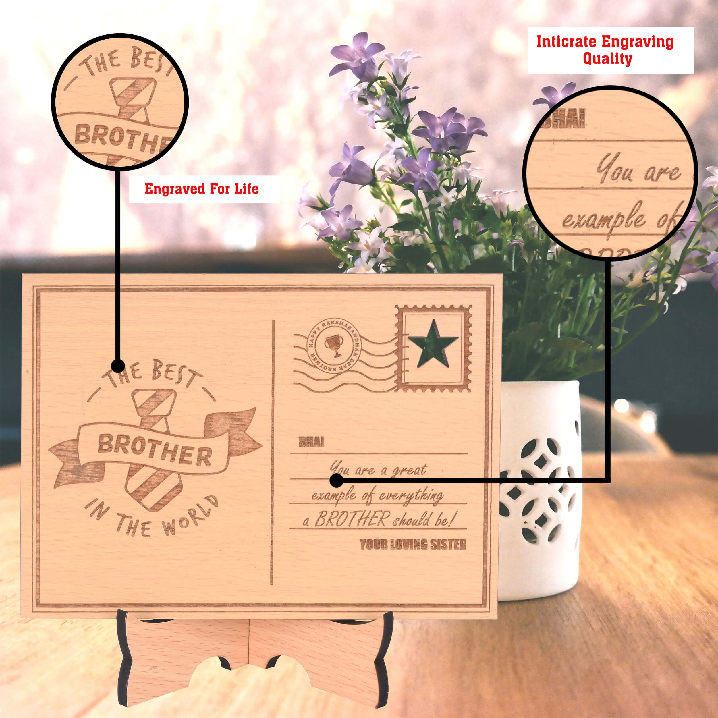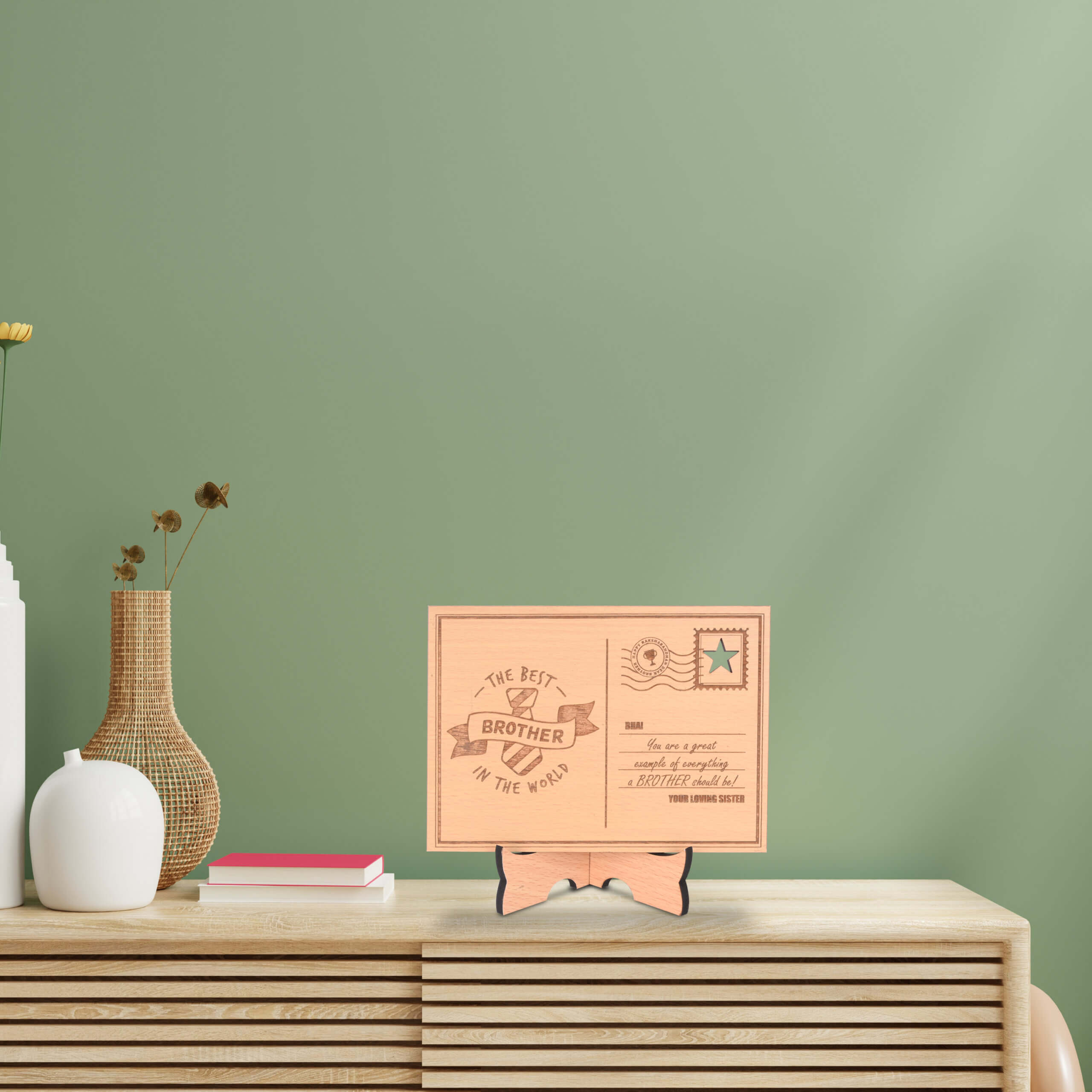 Personalized Wooden Engraved Postcard For Brother With Wood Stand