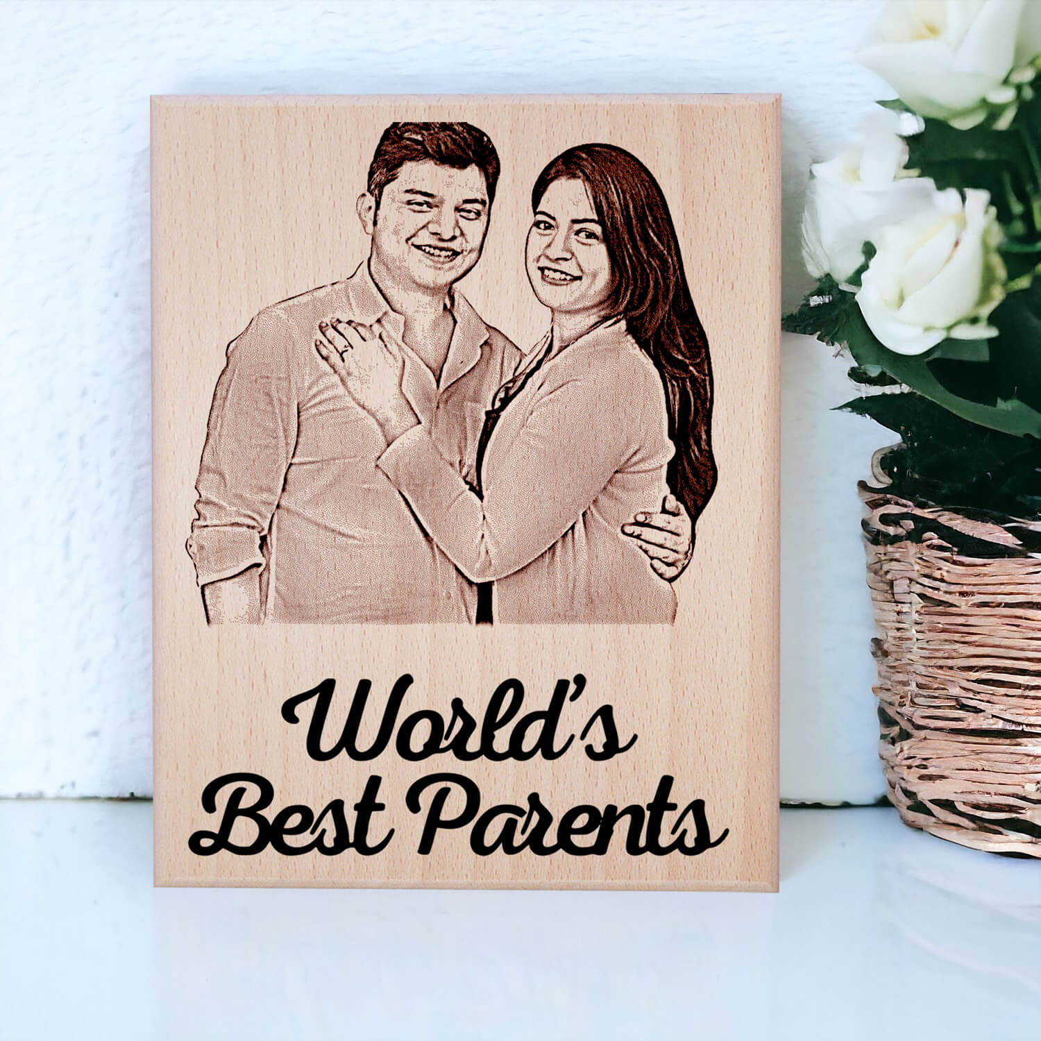 Our personalized natural frame is exquisitely designed to showcase a cherished photograph of your parents. Crafted with care, it features a perfect detailing, symbolizing the love and bond between parents and children. The gift for mom and dad which include frame is made from high-quality materials, ensuring its durability and longevity.