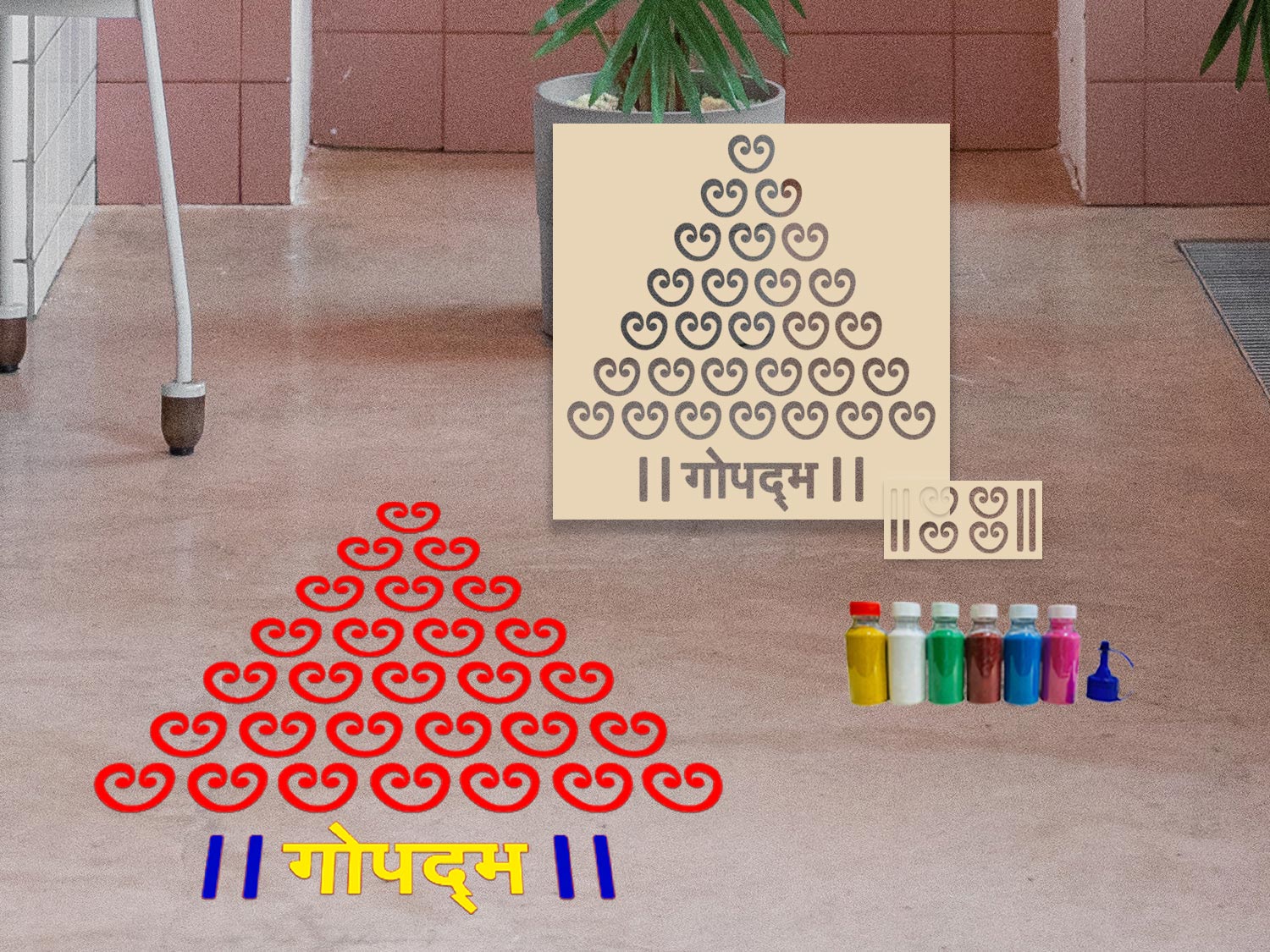 Wooden Gopadma Rangoli Stencil With Rangoli Colours