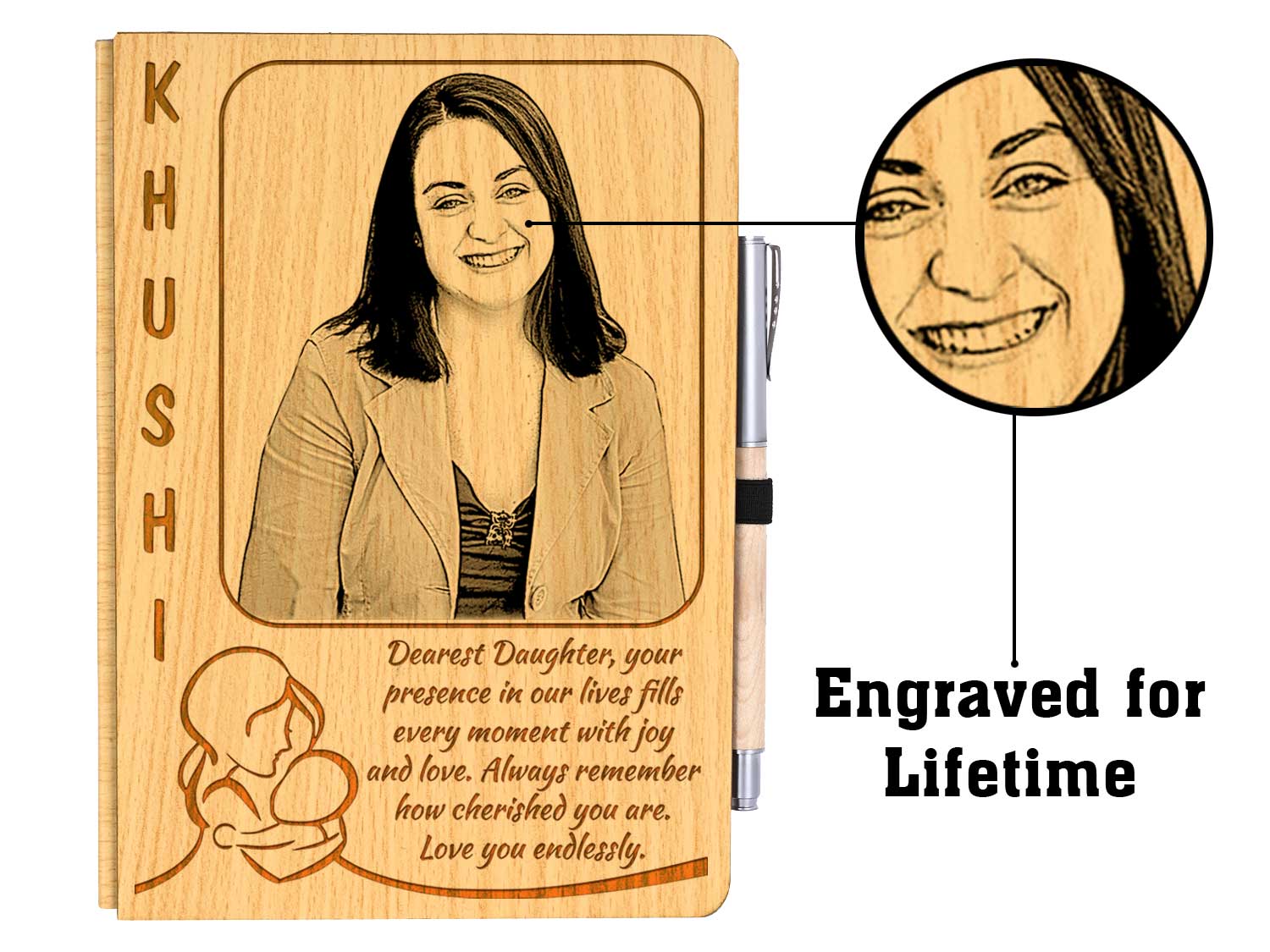 Discover the best birthday gift for daughter as you explore our gift ideas for daughter, including customized and personalized photo diaries & pen. Make her day even more memorable with our surprise gift ideas for daughter, ensuring she receives a truly unique gift for daughter birthday. With every page she turns, your love will shine through in this wooden photo diary, making it a birthday surprise for daughter that she’ll treasure forever.