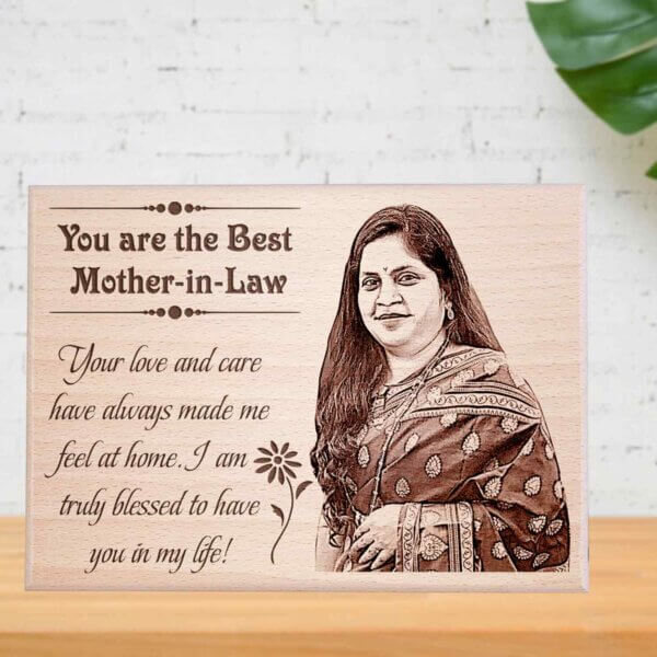 Surprise your mother-in-law with a beautifully engraved wooden photo frame, a meaningful gift for mother-in-law that captures precious memories. Perfect as a mother-in-law photo frame, this elegant keepsake makes an ideal mother-in-law birthday gift, Mother’s Day gift, or a special token of love.