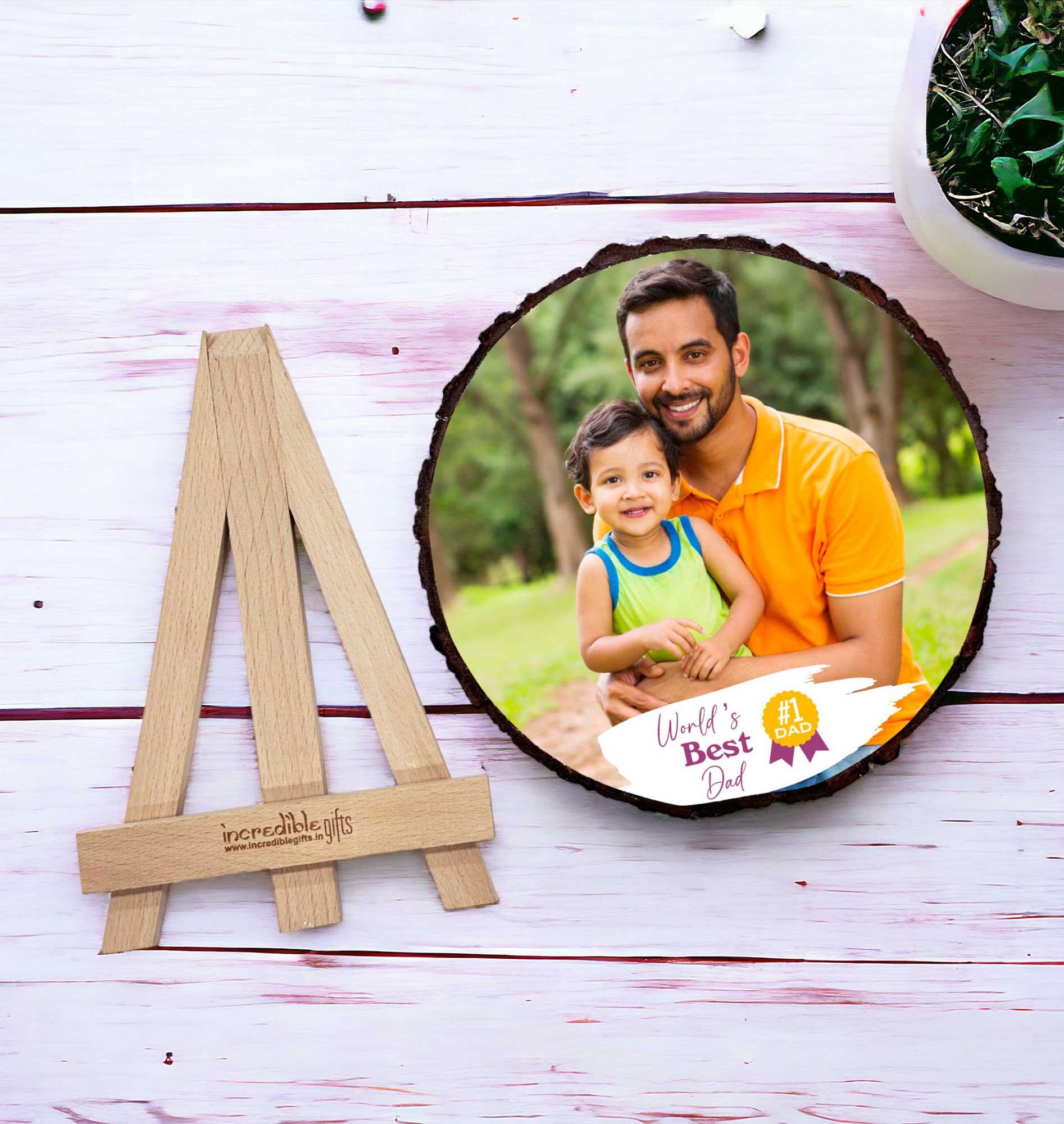 Surprise dad with a unique Personalized Colored Wooden Slice Photo Frame for Father!