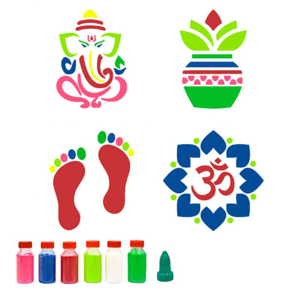 Diwali Rangoli Stencils Decorations for Floor with 6 Colors (Set of 5)